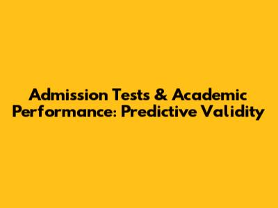 Admission Tests & Academic Performance: Predictive Validity