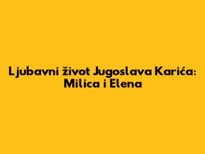 Ljubavni Život Jugoslava Karića: Milica I Elena