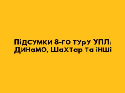 Підсумки 8-го Туру УПЛ: Динамо, Шахтар Та Інші
