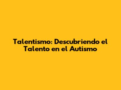 Meta: Descubre el Talentismo en el autismo: un enfoque innovador para identificar y potenciar las habilidades únicas de las personas autistas.